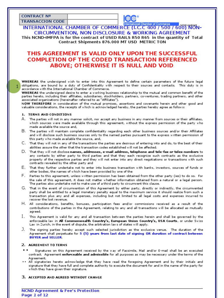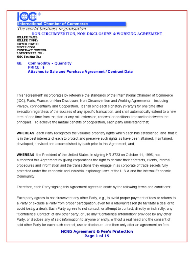 No preview available. Commodity origin contract qty contract period price. A sample of Non-Circumvention Non-Disclosure Working Agreement NCNDA.