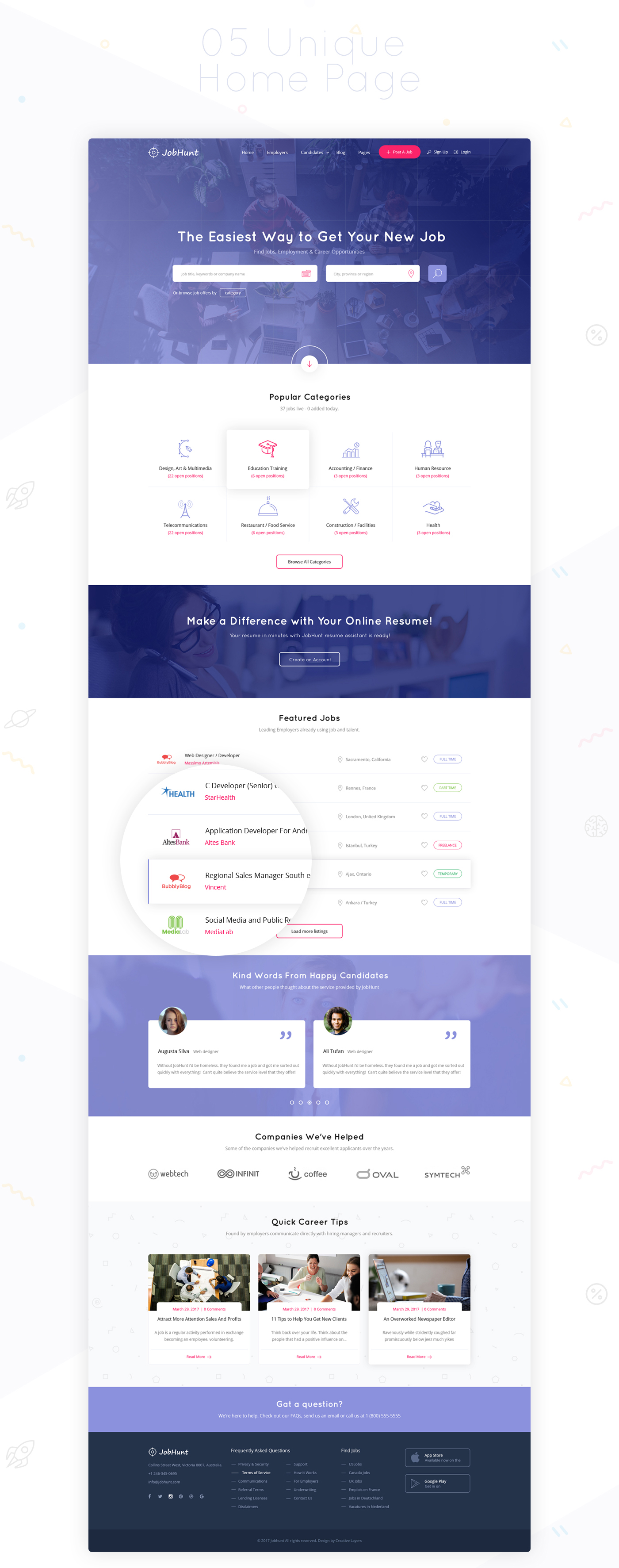 Finish In 10 Minutes. 2 Save Print Easily. Jobhunt Job Board HTML Template is crafted with thorough understanding of the business to connect employers and candidates.